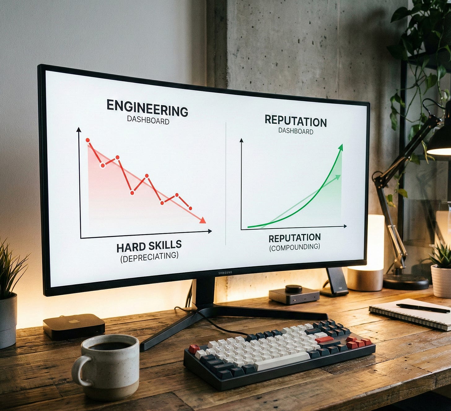 Reputation is the only career asset that enjoys compound interest. It travels with you. It doesnât care if React gets replaced by Svelte. It doesnât care if the economy crashes. If 500 people know you are smart and reliable, you will never be unemployed.
