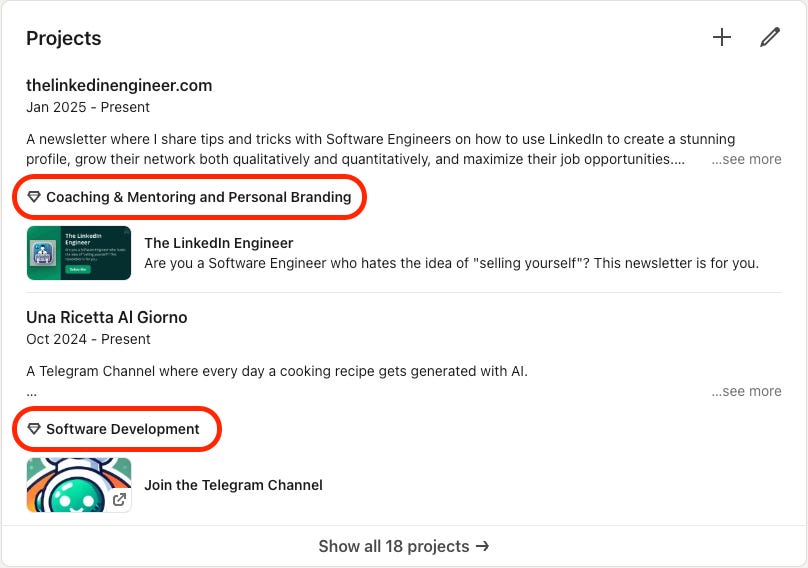…but also in the “Projects” section.