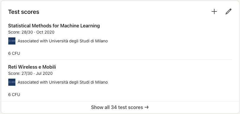 Thereâs a section that I rarely see used: the âTest scoresâ. This is a missed opportunity to make your profile even more detailed.