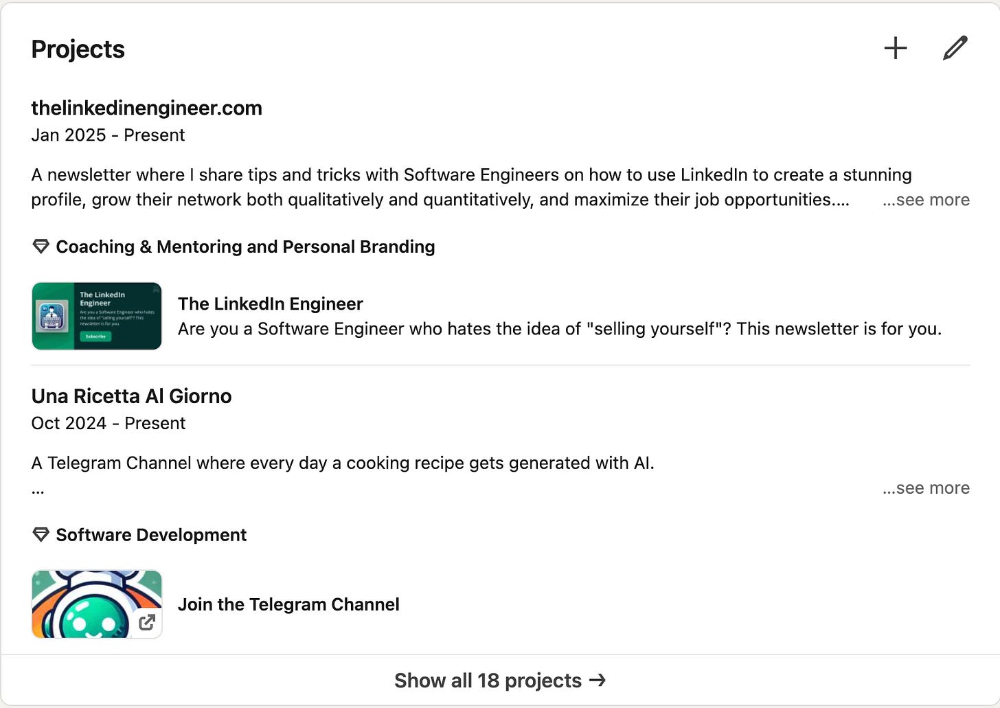 Since weāre talking about projects, we canāt forget the Projects section, where you can list them.