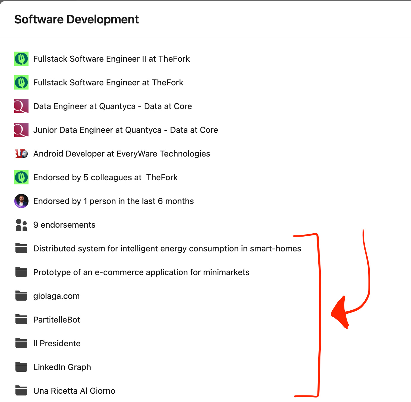 Here below, for example, you can see how choosing always āSoftware Developmentā leads to a long list of projects associated to the same skill, making that skill a lot more prominent and credible šš»