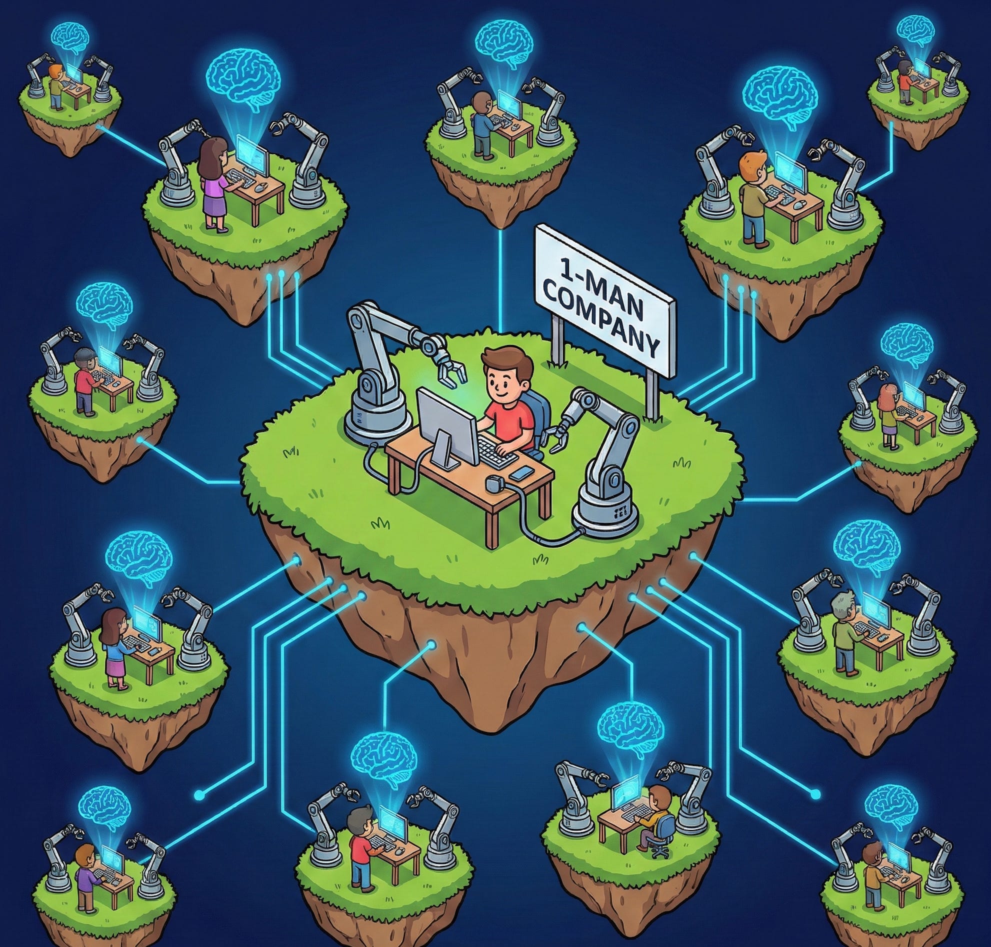 Five years ago, the theory of the "1-man company" orchestrating both digital and physical empires sounded like an extreme cyberpunk fantasy. It was an improbable thought experiment. Today, the contours of this reality are becoming incredibly concrete.