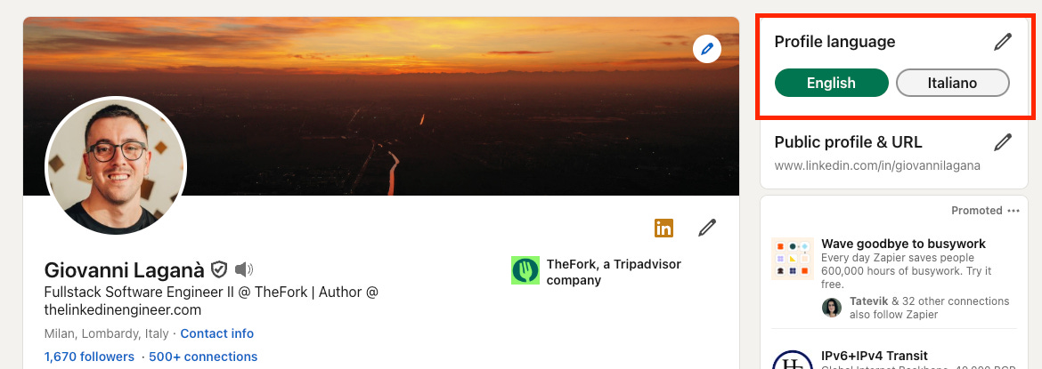 But if you work in fields like tech, where English is the global standard, my advice is clear: write your profile in English.