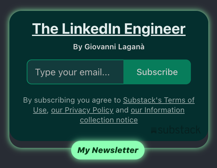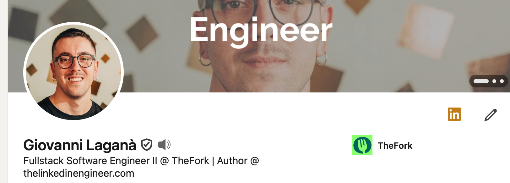 My own headline is a clear example of this principle in action: “Fullstack Software Engineer II @ TheFork | Author @ thelinkedinengineer.com”. It uses the platform’s structure to immediately state my primary role and my most important project, the newsletter.