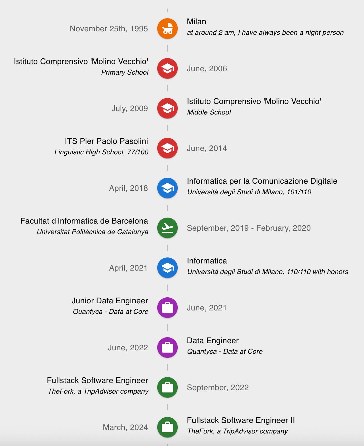 Your website: This is where you can tell the story behind your timeline. On giolaga.com, the “History” page also lists my full career path, but it does so in a more narrative format that complements the structured data on LinkedIn.