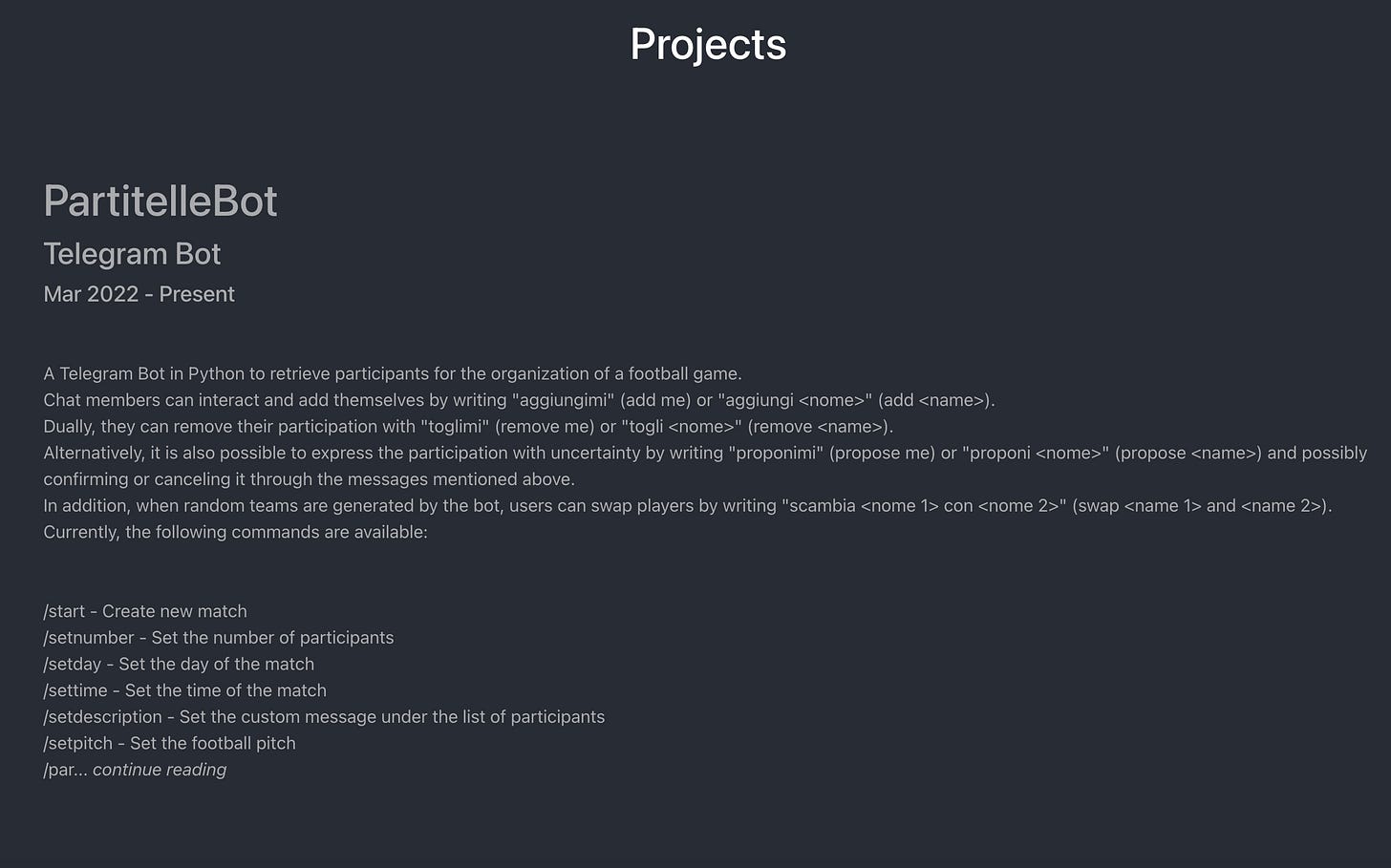Your projects: