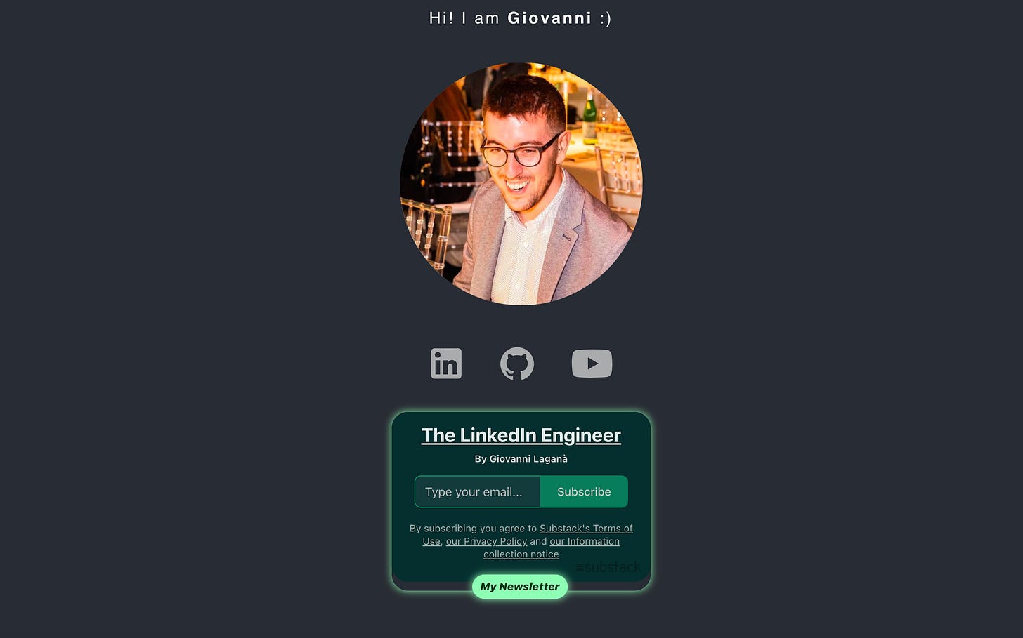 Your central hub: A personal website is the one link that rules them all. On giolaga.com, I link to my newsletter, my GitHub, and my LinkedIn. It’s the central “switchboard” for your entire online presence.